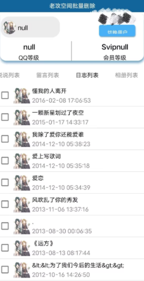 【资源介绍】:QQ空间说说留言日志相册太多逐个删太麻烦?使用空间删除助手,摆脱手动痛苦,一键批量删除,快速安排,省时省力。