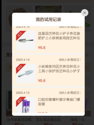 【参与方式】打开并夕夕-个人中心-省钱月卡-然后会弹出来让你0.1或0.3开通月卡,开好后打开省钱月卡-免费试用,每天可以选择两个东西,建议选择几百件的东西,因为一百个或者几十个的东西很难抢到,领取后点击浏览店铺30秒(5次),把成功率弄到100就可以了,建议每隔几小时去看一下。