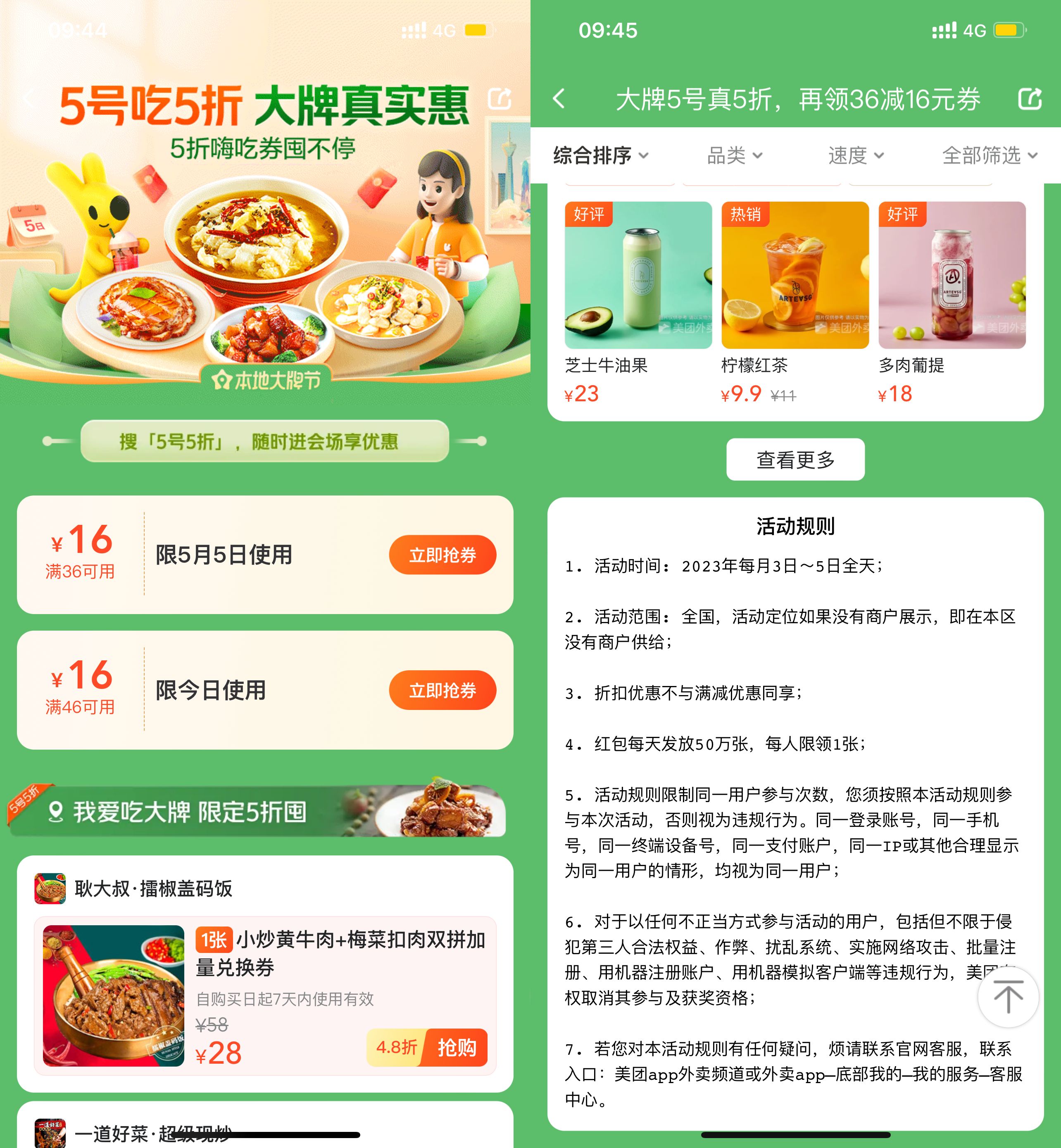 美团本地大牌节领36减16元券