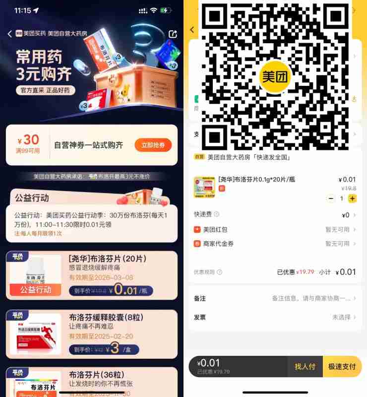 美团0.01元撸布洛芬20片包邮