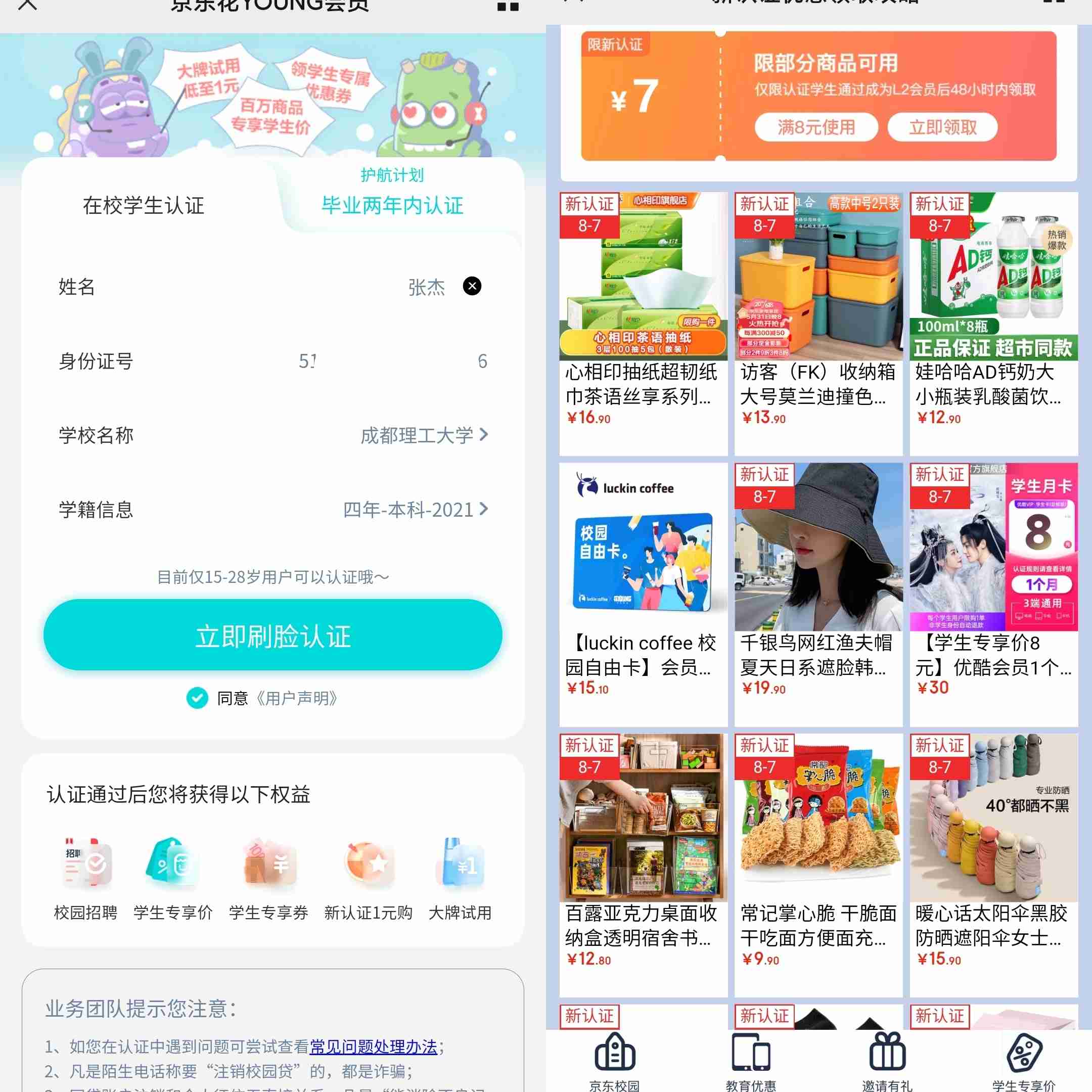 【活动规则】复制活动链接到微信打开,然后大学随便输个附近的大学就可以了,年龄15-28岁就ok,认证成功可以领取一张7元的优惠劵,选商品8元的就可以一元购
