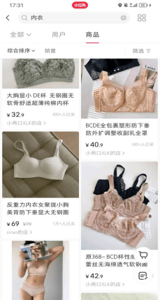 上架后,我们选定的这一款内衣之后,就需要开始铺笔记了,我们先在小红书搜索内衣这个词语,找到全部栏目,查看爆款笔记,是视频还是图文素材,如果是视频素材,我们也需要发布视频素材,视频素材可以多渠道获取2-3个进行混剪。