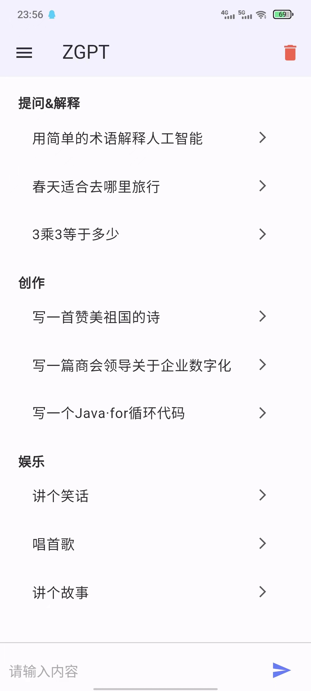 软件介绍:ZGPT安卓版是一款功能强大的人工智能软件。通过ai模型写作、聊天,使用起来非常方便,在这里有超多不同类型的互动模式,热爱人工智能科技的用户体验。