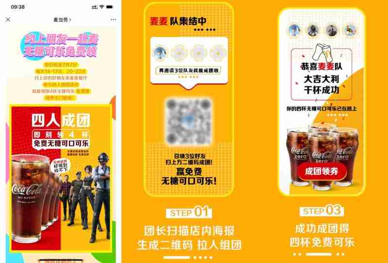 麦当劳4人成团免费喝可乐