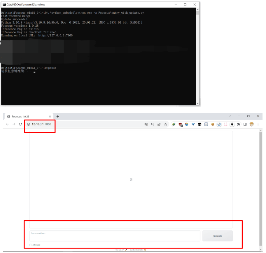 然后把这两个文件放在主程序的 \Fooocus\models\checkpoints 路径下,双击 run.bat 即可启动软件,