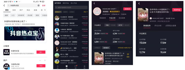 以抖音为例,APP端的热点宝和PC端的热点宝,还有区别的。此外巨量百应、巨量星图、巨量算数也是可以用来进行搜寻对标和分析对标数据的。